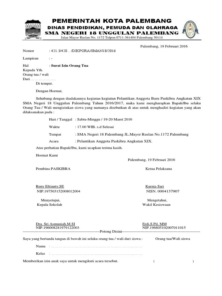 Surat Ijin Orang Tua Docx - Contoh Surat Izin Orang Tua Wali Untuk Kegiatan Sekolah Blog Bikincv - Sehubungan dengan akan berakhirnya kepengurusan paskibra.